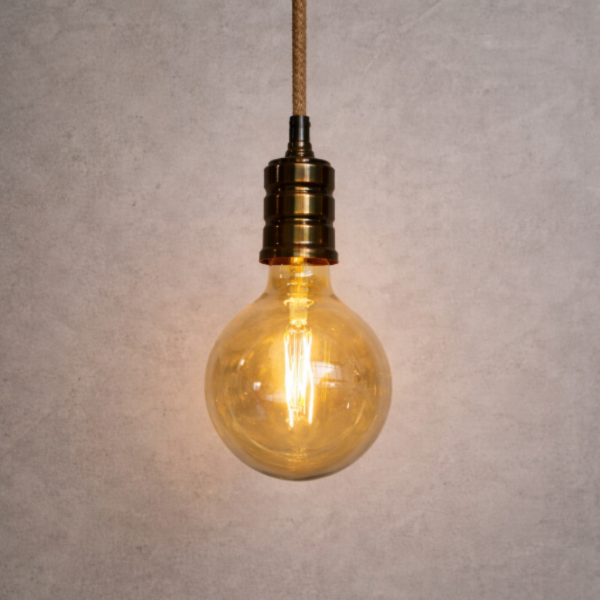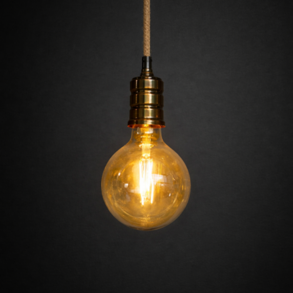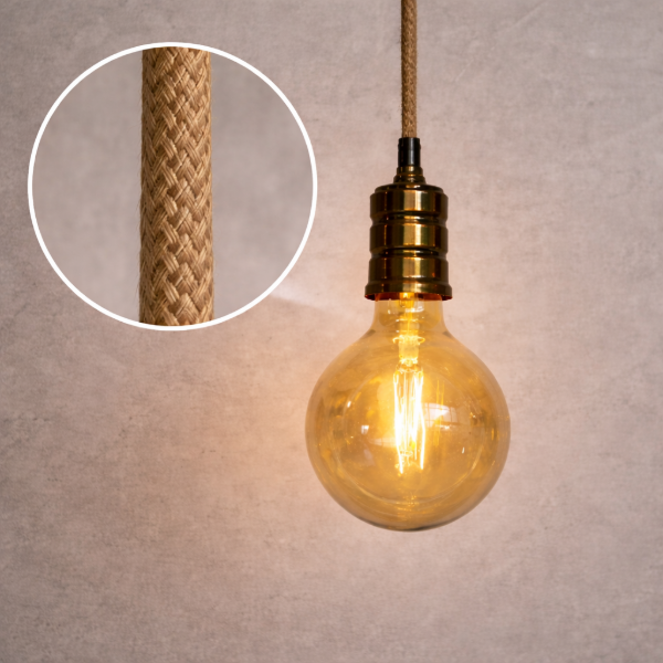 Lámpara colgante de diseño simple y atemporal, ideal para aportar calidez y estilo a cualquier ambiente. Su combinación de portalámpara metálico en terminación bronce y cordón textil genera un look industrial cálido, perfecto para espacios modernos, nórdicos o rústicos.
